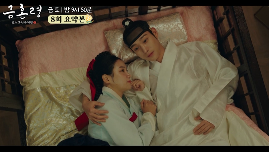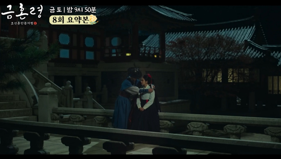 앞선 7회 방송에서는 탕 실에 있던 이헌이 소랑을 끌어당겼고, 물속에서 안기게 된 로맨틱한 분위기 속 이헌이 소랑에게 기습적으로 입을 맞추는 장면이 그려졌다