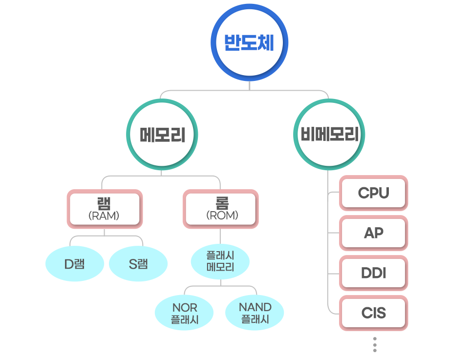 모바일 기기의 중앙처리장치인 AP, 컴퓨터의 중앙 처리장치인 CPU, 디지털 신호를 처리하는 DSP, LED, 배터리의 전력을 효율적으로 배분하는 전력관리 칩 PMIC, 렌즈를 통해 들어오는 빛을 전기적인 영상 신호로 바꿔 주는 CMOS 이미지센서(CIS), 디스플레이 드라이버IC(DDI), 통신, 각종 센서 등 다양한 전자제품에서 핵심 역할을 담당하고 있기 때문에 회로가 복잡하고 종류가 매우 많습니다.
