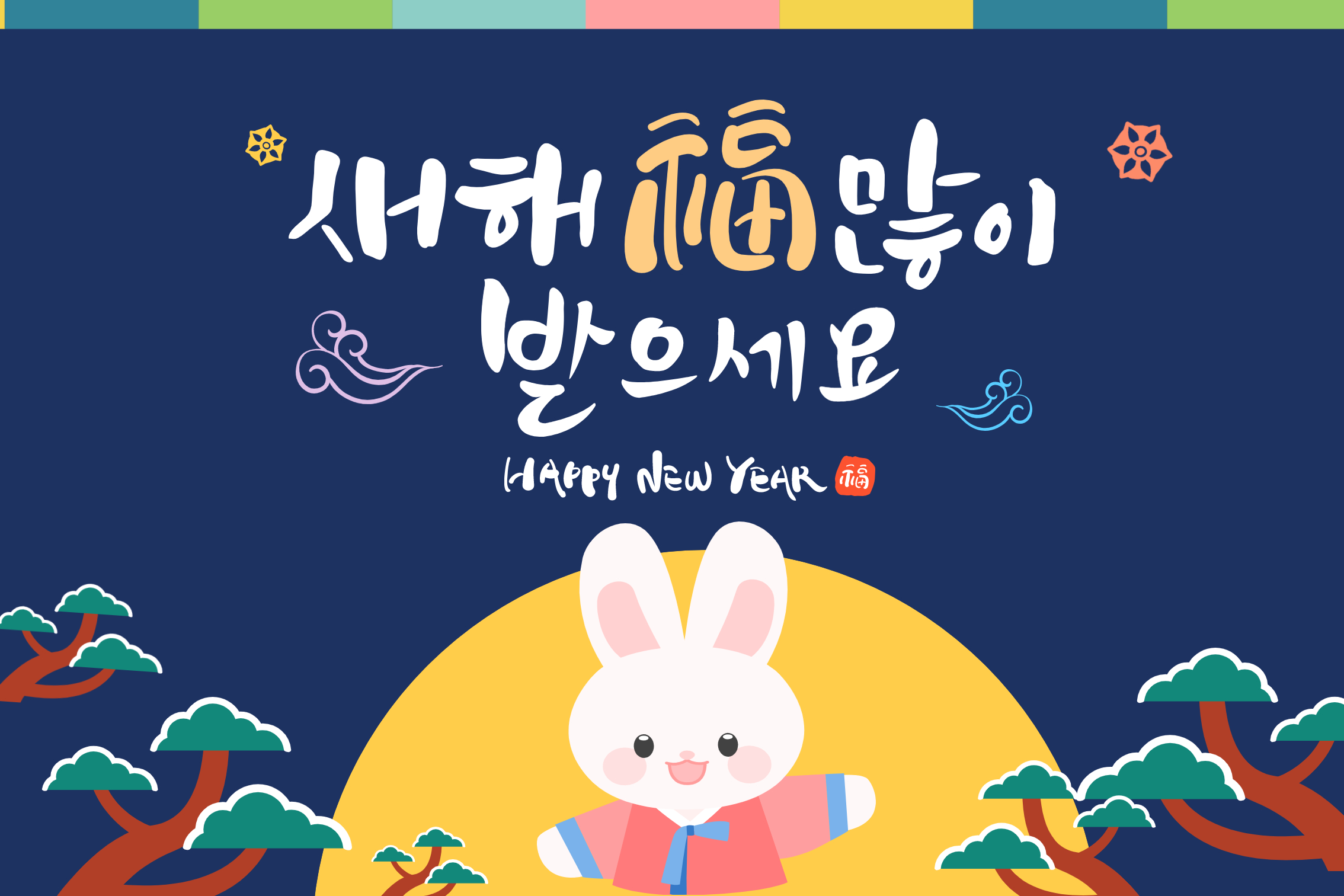 - 지난해 저를 응원해주시고 격려해준 덕분에 한 해 행복하게 보냈습니다. 다가오는 새해에는 더 승승장구하시길 바라며 2023년 신축년도 가정에 행운과 평안이 가득하시길 기원합니다.