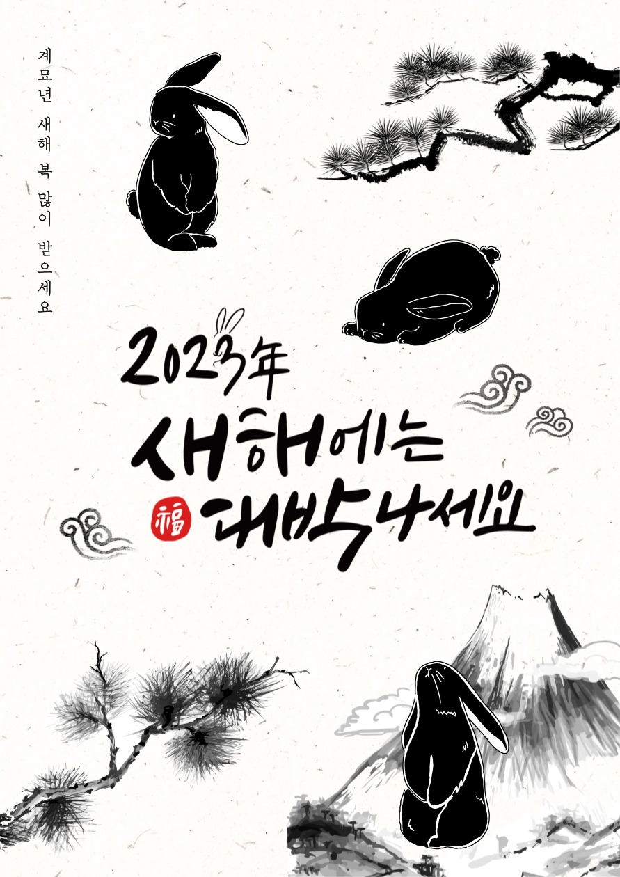 - 계묘년 새해에는 기쁨은 더하고, 사랑은 곱하고, 행복은 나눌 수 있는 뜻깊은 2023년 되기를 기원하며 소망하는 모든 일이 복스럽게 잘 이루어지는 복 된 한 해 보내시길 바랍니다.